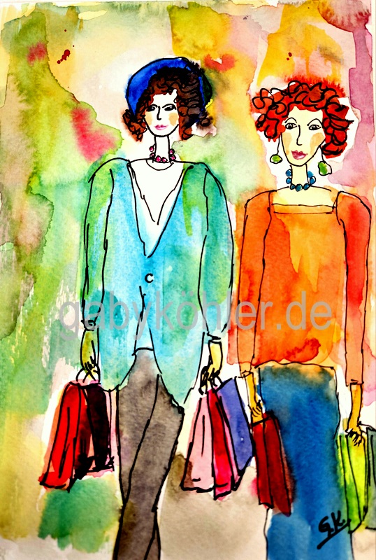 Weibsbilder auf Papier, humorvolles Frauenmotiv von Gaby Köhler